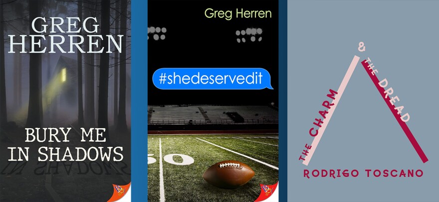 Susan Larson talks with Greg Herren about his two latest books, 'Bury Me in Shadows' and '#SheDeservedIt', and poet Rodrigo Toscano about his new collection, 'Charm and Dread.'