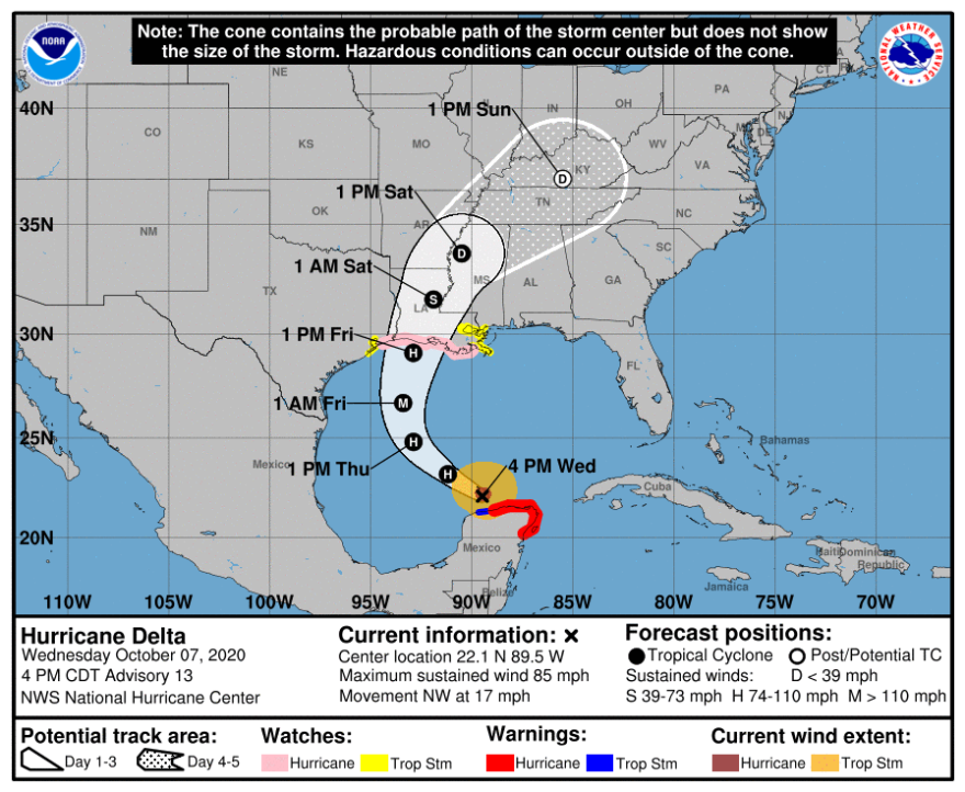 Gov. Edwards has declared a state of emergency ahead of Hurricane Delta, which is moving through the Gulf of Mexico after slamming the Yucatan Peninsula.
